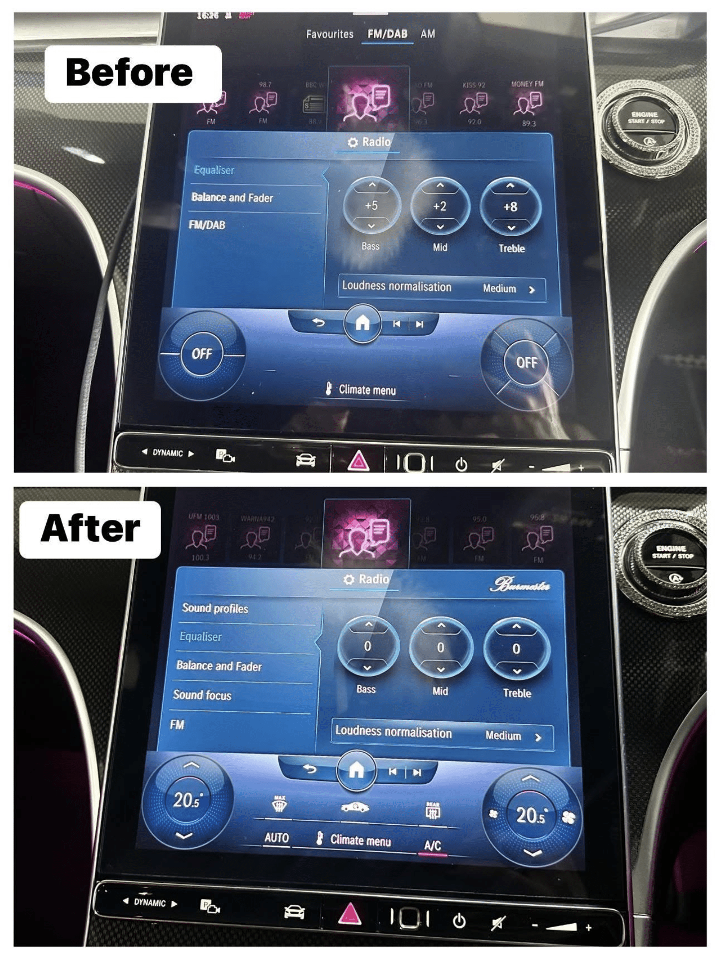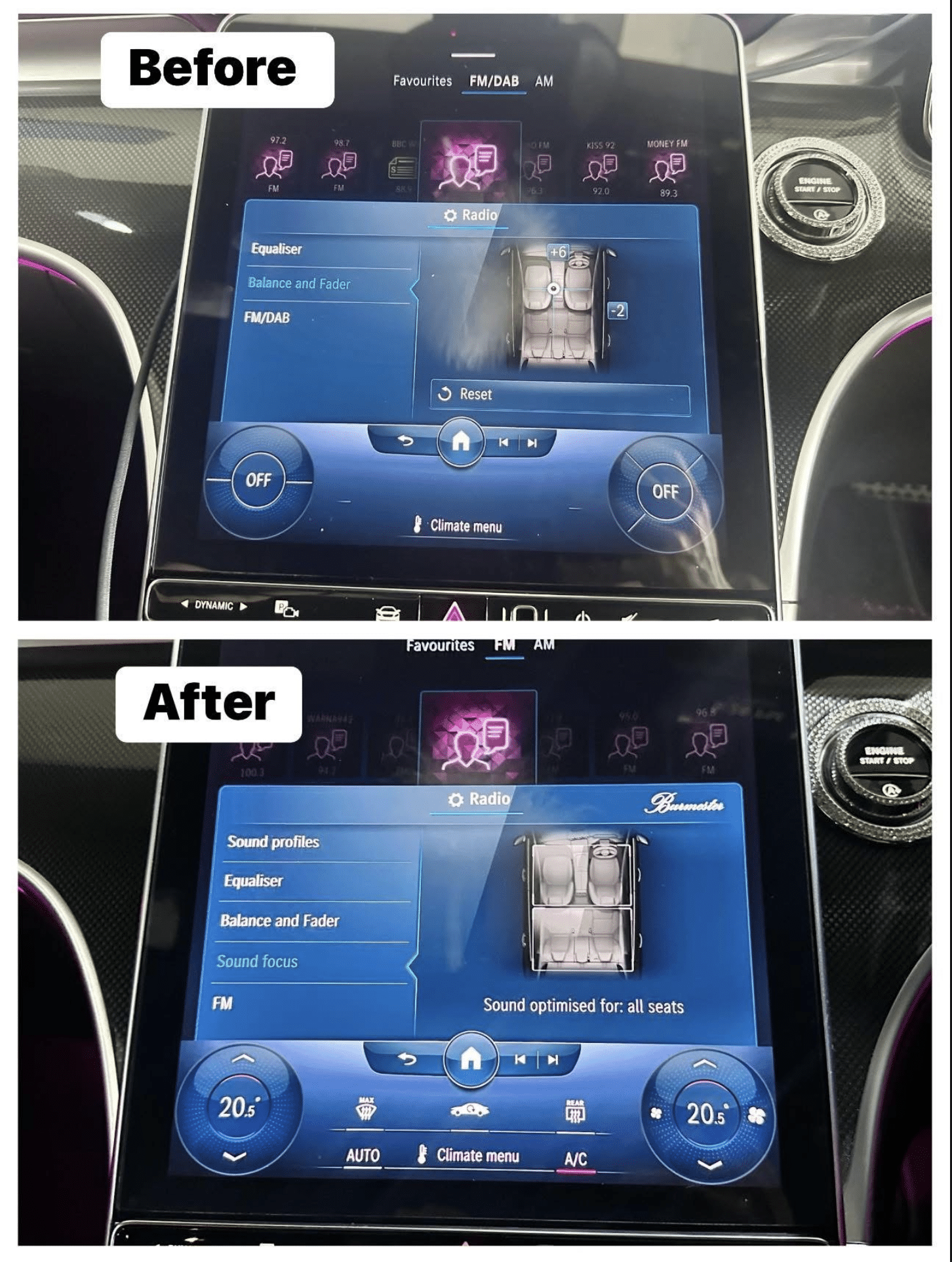 We can retrofit Burmester to Mercedes C Class. This is specially configured for the passenger compartment to make every piece of music an outstanding audio experience.