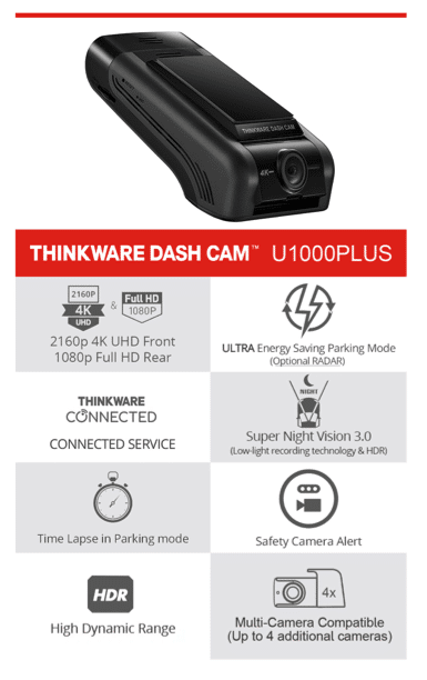 We use a Thinkware Witness Camera System U1000Plus as it is a very neat camera that sits flat against the front windscreen with an adjustable angled lens. Cable entry is side mounted so a little more visible than some other models but we will keep this to an absolute minimum. The optional rear camera is a small tube shaped module that attaches to the top centre of the rear window and records images from behind you. We keep all cables hidden within existing rubber tubes through the boot hinge when required. Also we only connect to circuits within the car that are known to not interfere with the complex electronics of your car.